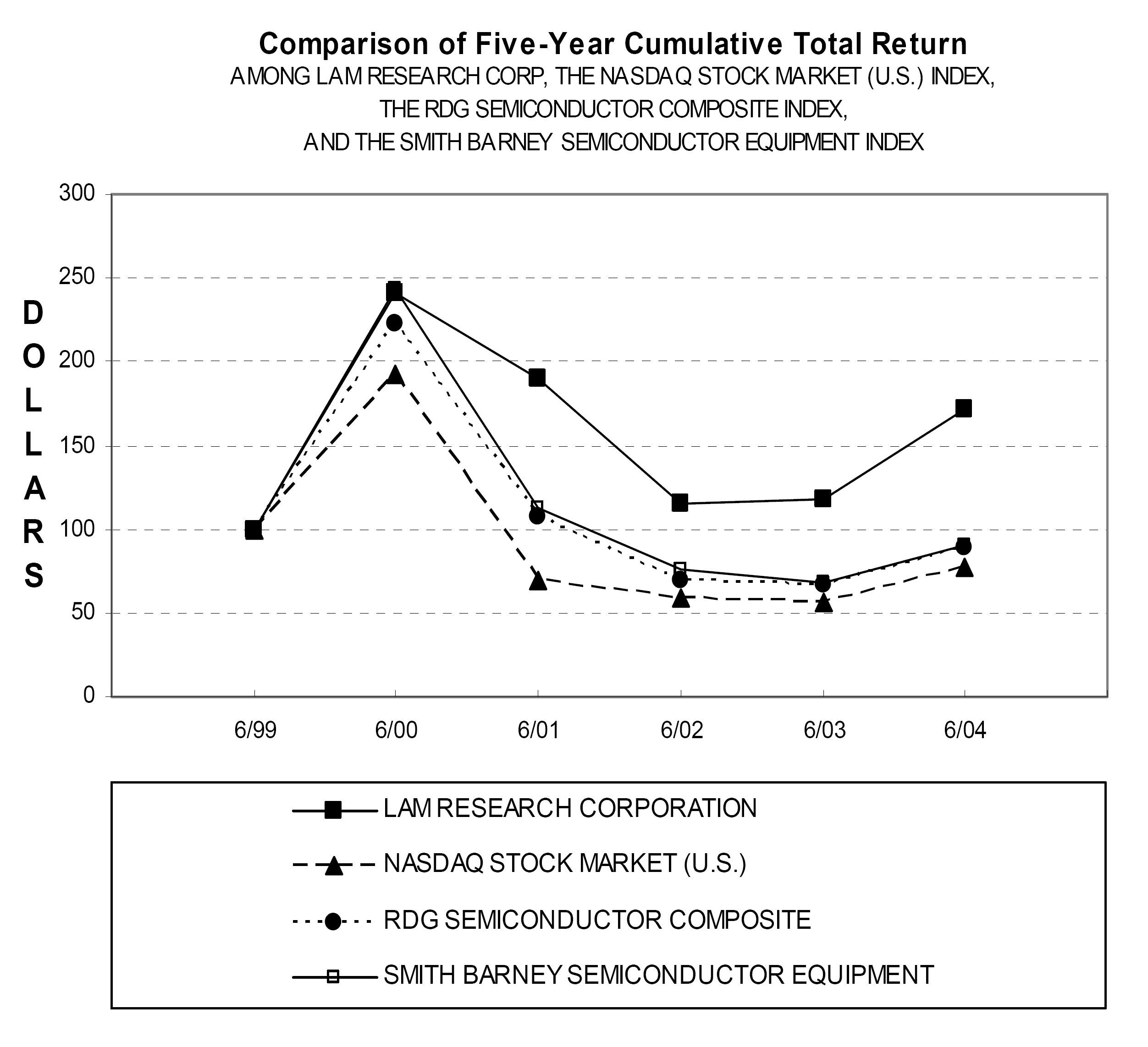 | In fiscal year 2004, the Companys stockholders approved an amendment to the 1999 ESPP to each year automatically increase the number of shares available for issuance under the 1999 ESPP by a specific amount on a one-for-one basis with shares of Common Stock that the Company will redeem in public market and private purchases for such purpose. During fiscal year 2004, the number of shares of Lam Common Stock reserved for issuance under the 1999 ESPP increased by 2.0 million shares to 11.0 million shares, subject to repurchase of an equal number of shares in public market or private purchases. |